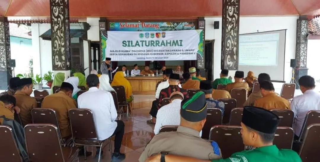 PENAJATIM.COM – Suasana hangat dan penuh kekeluargaan mewarnai kegiatan Silaturahmi Majelis Ulama Indonesia (MUI) Kecamatan Lawang bersama para Umaro’ serta sosialisasi kebangsaan yang digelar di wilayah Kecamatan Lawang, Kabupaten Malang, Senin, (13/10/2025). Acara ini dihadiri oleh berbagai tokoh penting setempat, mulai dari Camat Lawang, Danramil, Kapolsek, jajaran MUI, KUA, hingga organisasi keagamaan dan kemasyarakatan.