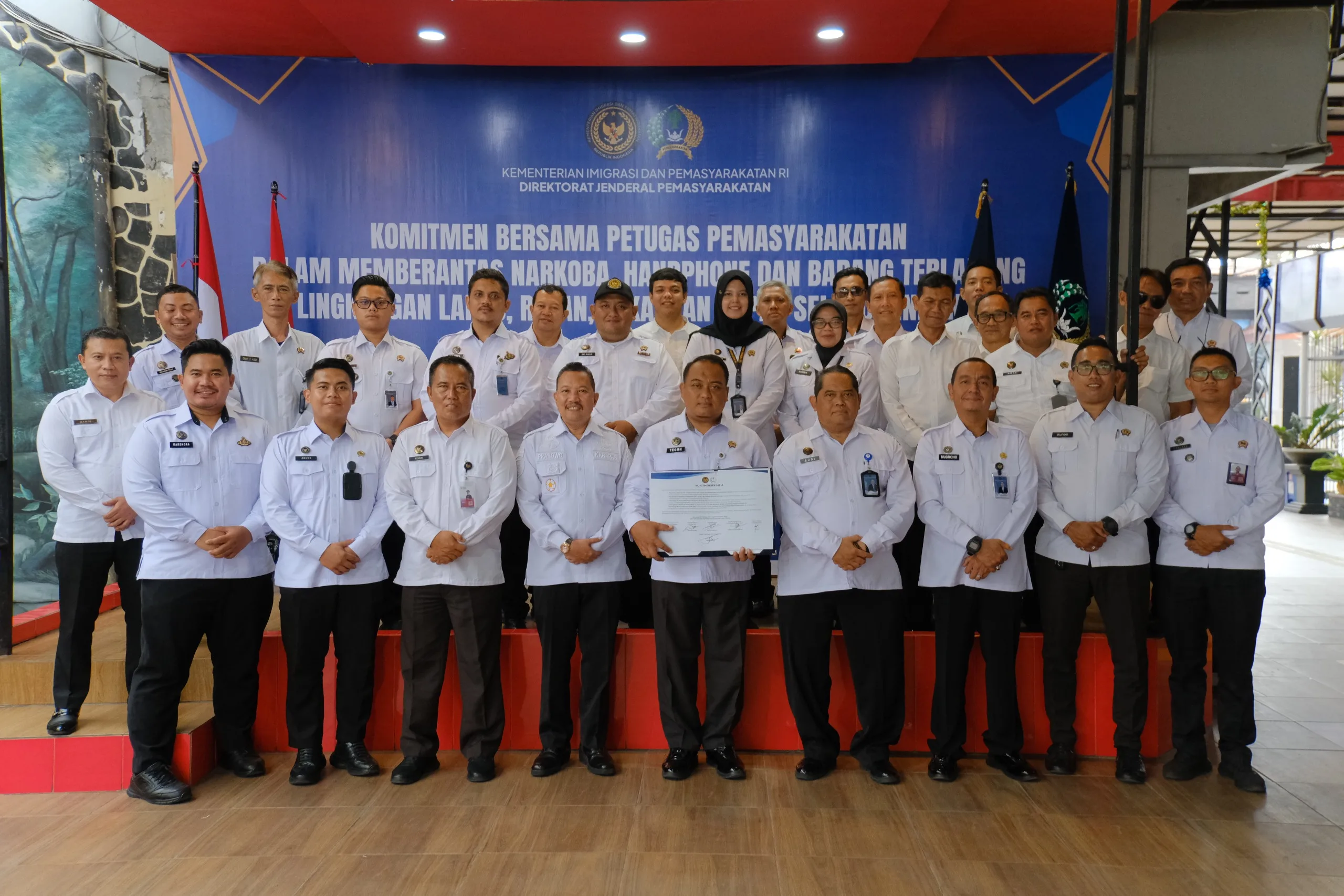 “Melalui momen ini, kita menegaskan komitmen bersama untuk terus berintegritas, memperkuat disiplin, dan mendukung penuh akselerasi program menimipas khususnya dalam pemberantasan peredaran narkoba, handphone serta penipuan dan pungli di dalam lapas demi terwujudnya Pemasyarakatan yang bersih dan berwibawa,” ujar beliau.
