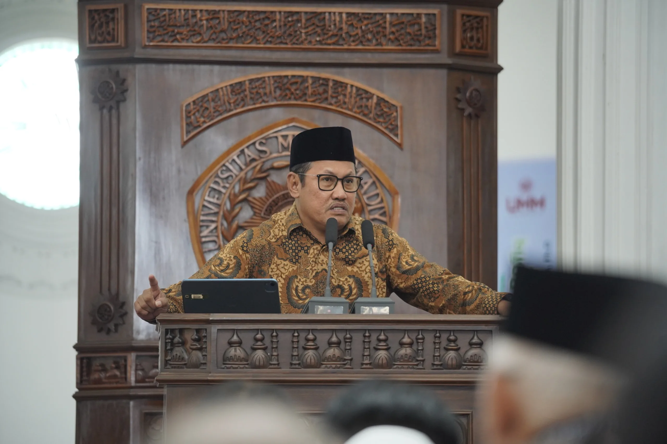 Rektor Universitas Muhammadiyah Malang (UMM), Prof. Dr. Nazaruddin Malik, M.Si, dalam kajian Ramadan di Masjid A.R. Fachruddin UMM, Kamis (19/2/2026).