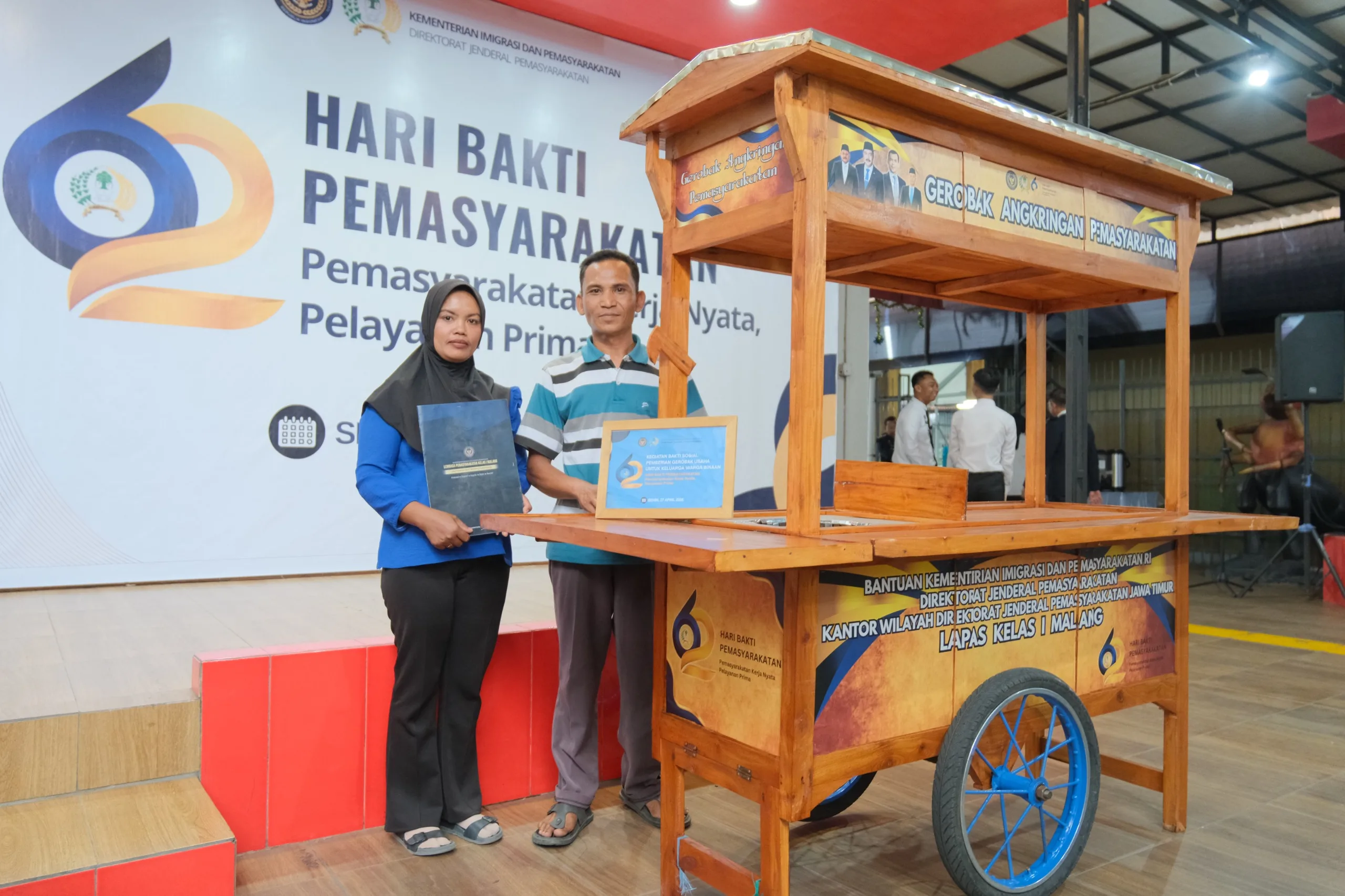 Semangat itu kemudian diterjemahkan di tingkat lokal. Usai mengikuti acara pusat, Lapas Kelas I Malang melanjutkan kegiatan dengan menyerahkan bantuan gerobak usaha kepada keluarga warga binaan. Langkah ini diposisikan bukan hanya sebagai bentuk kepedulian, melainkan bagian dari upaya mendorong kemandirian ekonomi di tengah keterbatasan yang dihadapi keluarga.